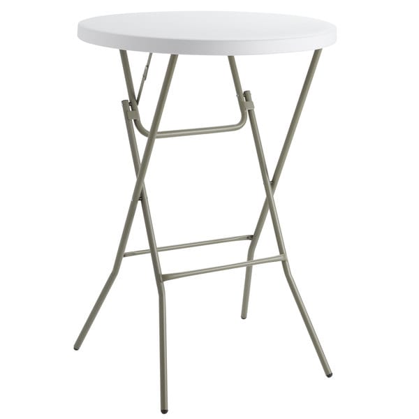 Our heavy duty folding white cocktail table is perfect for any event.  Our folding tables are easy to move and features rubber leg caps to help protect your floors.  This table has a height of 43".